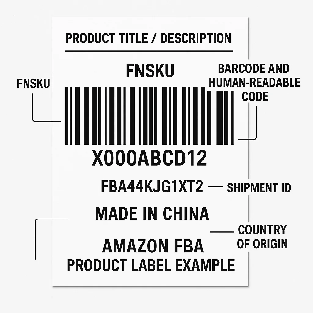 This is the most important part of an FBA label. The FNSKU is Amazon’s unique identifier for your product and connects the item specifically to your seller account. Every individual product you send to an Amazon warehouse must have its own FNSKU label unless it’s enrolled in the stickerless, commingled inventory program.
