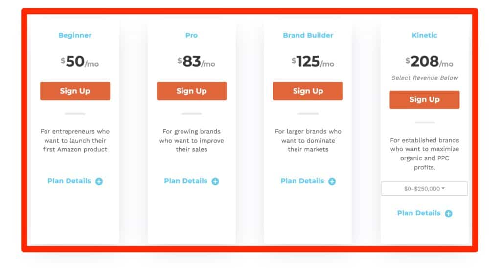 | Jungle Scout | $29/mo | Up to 80% off | No | 95% | Beginner- Advanced | No |
